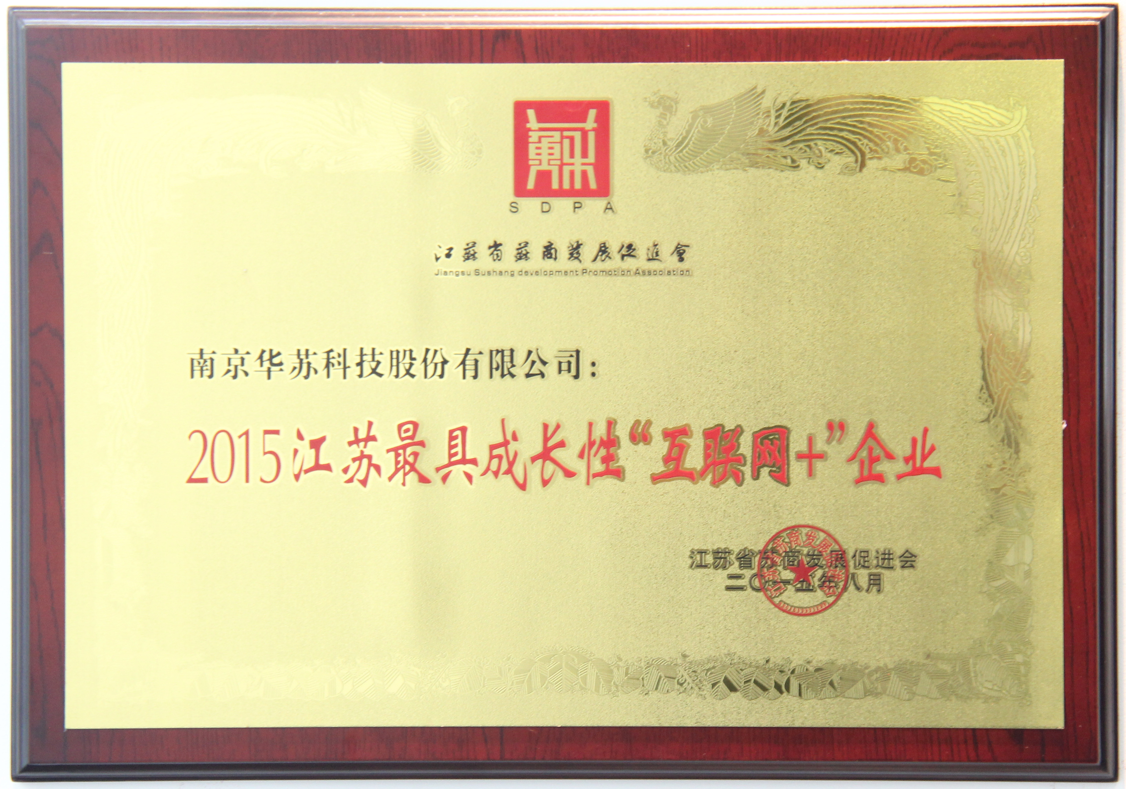 華蘇榮膺“2015江蘇最具成長性‘互聯(lián)網(wǎng)+’企業(yè)”稱號