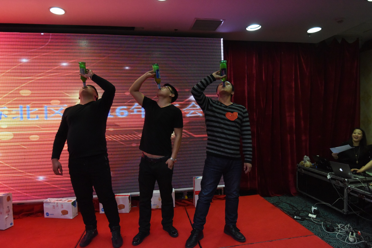游戲和抽獎(jiǎng)是年會(huì)中不可缺少的歡樂(lè)環(huán)節(jié),伙伴們創(chuàng)意無(wú)限,將平凡的游戲玩出了新樂(lè)趣與新高度。再看看領(lǐng)取了大獎(jiǎng)的伙伴們,在激動(dòng)與欣喜交匯之際,怎能不來(lái)一瓶?兄弟們,干了!