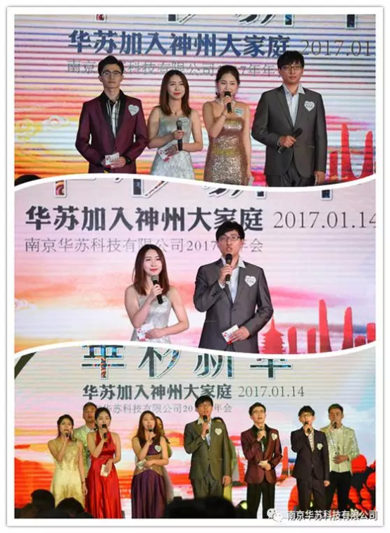 13時(shí)38分,在暖場(chǎng)主持奔放青春的開(kāi)場(chǎng)后,華蘇人一起回顧了2016的滿滿收獲;14時(shí),華蘇總部2017年年會(huì)正式拉開(kāi)序幕,瀟灑英俊的男主持,靚麗清新的女主持,首先給大伙兒養(yǎng)了眼,平日里靦腆害羞的伙伴們,今日卻化為了一顆顆閃亮明星,在舞臺(tái)上盡綻光彩,聚光燈勾勒下的輪廓,各個(gè)自信飛揚(yáng)。