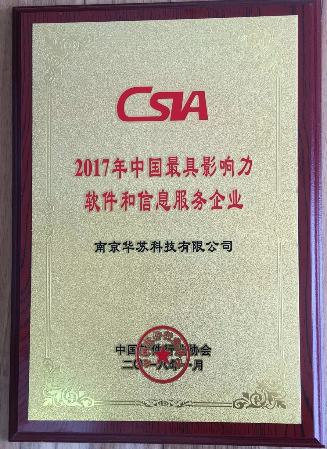 華蘇科技榮獲“2017年影響力軟件和信息服務(wù)企業(yè)”重磅獎項