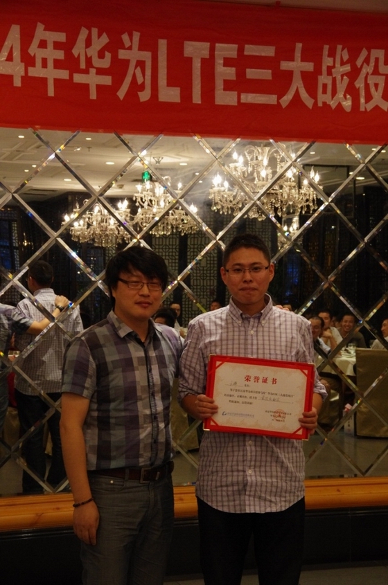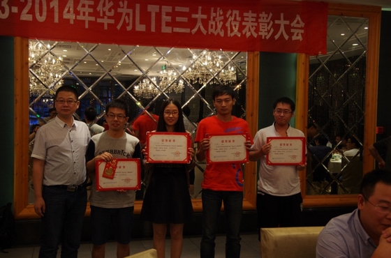 ? 2014年5月,獲LTE三大戰(zhàn)役優(yōu)秀進(jìn)度獎(jiǎng),劉永升、甄文興獲華為優(yōu)秀個(gè)人 。
