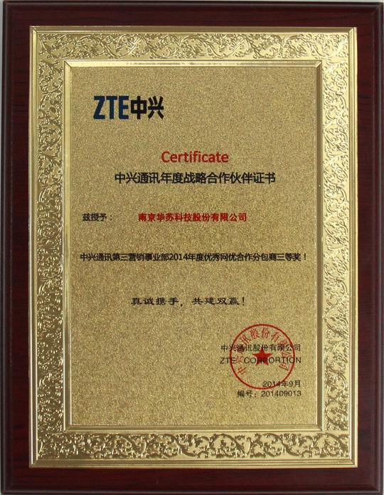 華蘇科技,再顯鋒芒——中興2014年戰(zhàn)略合作會(huì)議再獲榮譽(yù)