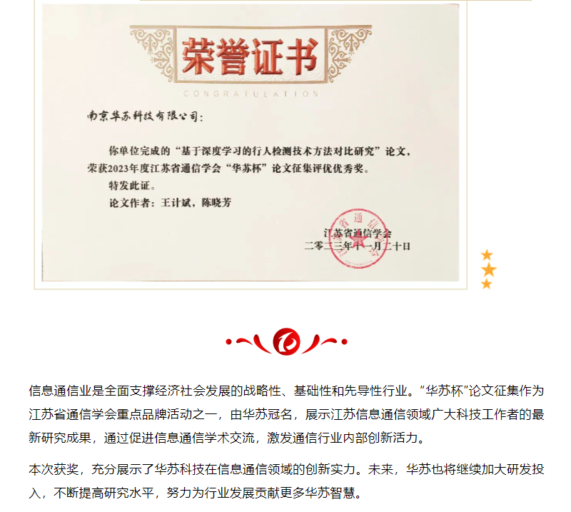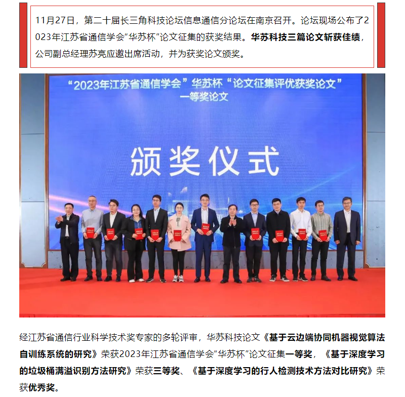 喜訊!華蘇科技在2023年江蘇省通信學會“華蘇杯”論文征集中斬獲佳績