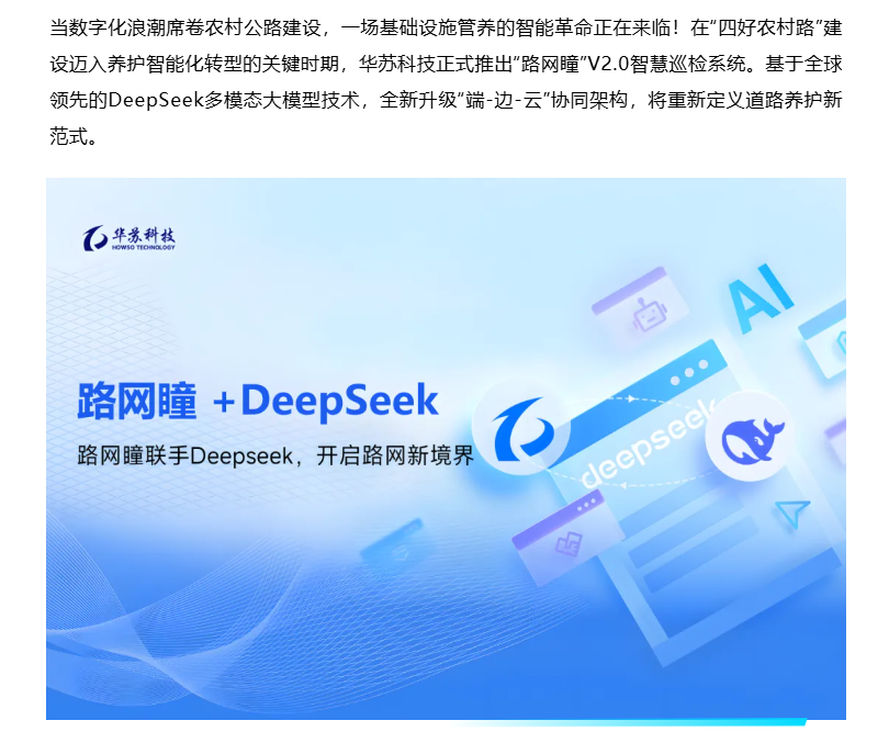DeepSeek+道路養護=?華蘇科技“路網瞳”V2.0帶來全新答案