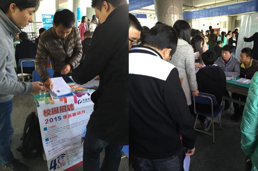 招聘會現(xiàn)場,人頭攢動,氣氛熱烈,華蘇科技的招聘負責人積極介紹了本公司的整體情況、發(fā)展歷程以及目前各運營商大規(guī)模發(fā)展4G和通信人才缺口較大的現(xiàn)狀,除此之外,還特別指出了華蘇“責任、誠信、專業(yè)、專注”的企業(yè)精神和“公平激勵、共同成長”的員工理念,引起了廣大學院學子的濃厚興趣。同學們也針對工作內容、工作方式和工作崗位對專業(yè)的要求等進行了詳細的咨詢和提問并都得到了相對滿意的回答。
