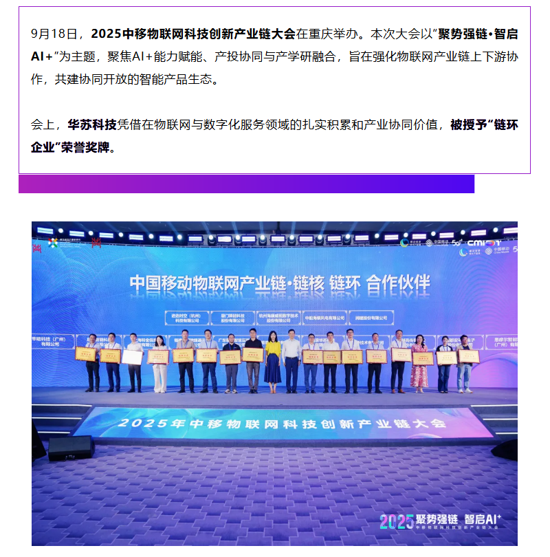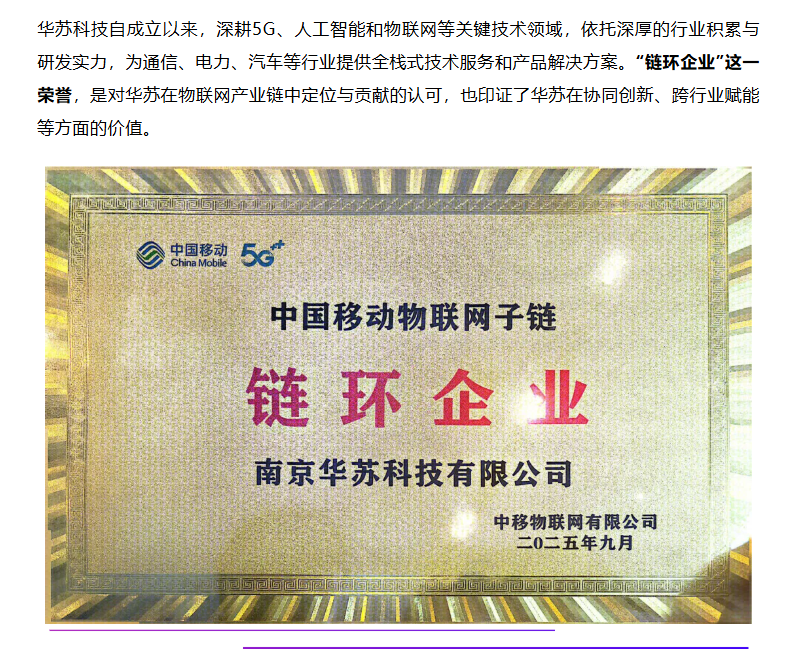 華蘇科技成為中移物聯(lián)網(wǎng)“鏈環(huán)企業(yè)”,攜手共促AIoT產(chǎn)業(yè)融通發(fā)展