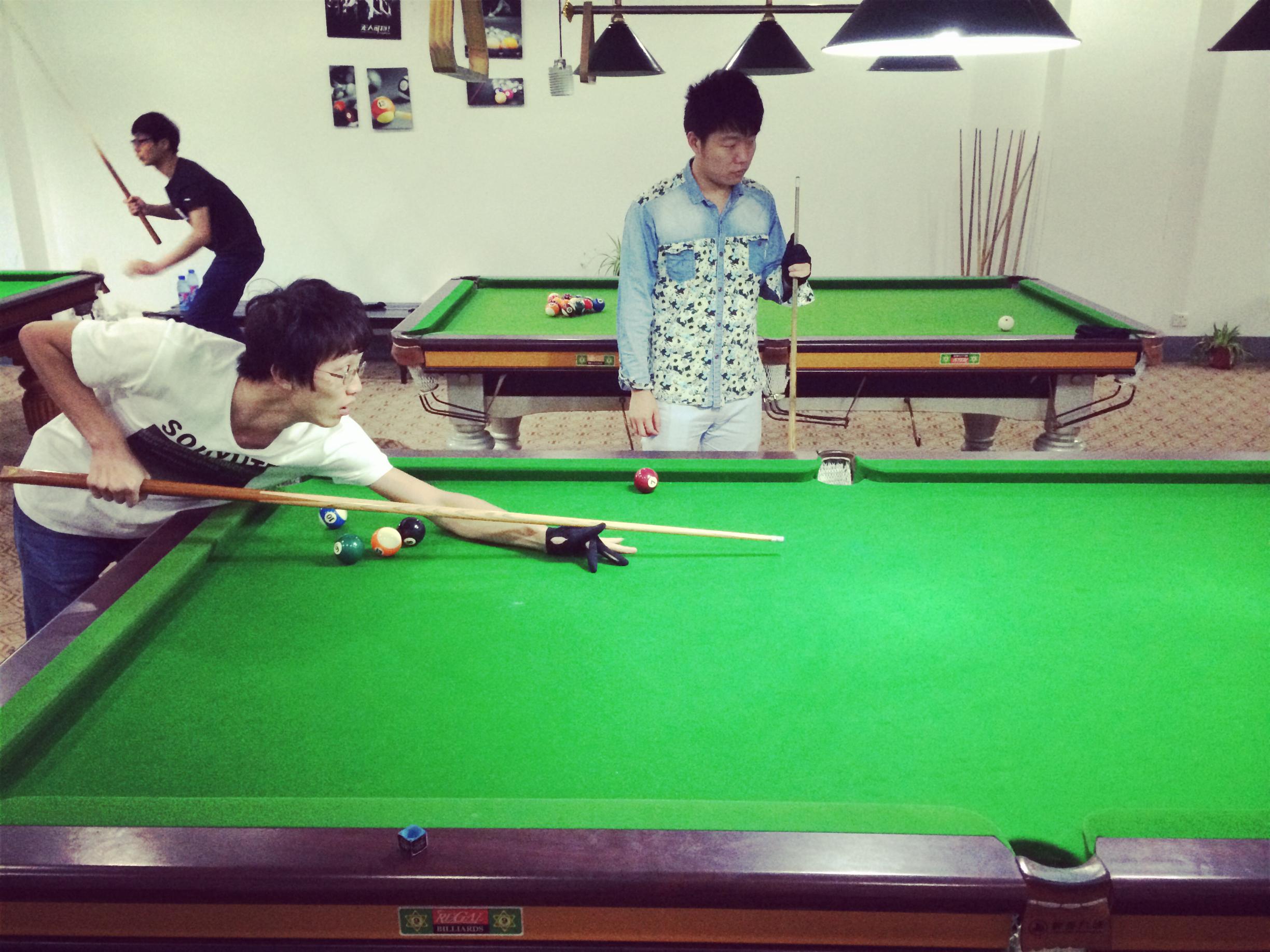 夜幕在不知不覺中籠罩了整個(gè)嘉興,也引出了燈光之下這座城市的獨(dú)特魅力。在業(yè)余時(shí)間喜歡組織活動(dòng)的嘉興項(xiàng)目組成員們自然也不會(huì)浪費(fèi)這般美好的時(shí)光,于是,一場(chǎng)激烈的“斯諾克”競(jìng)賽就此展開,也讓兄弟們?cè)诜潘傻耐瑫r(shí)鍛煉了眼力、腦力及縱觀大局的能力。