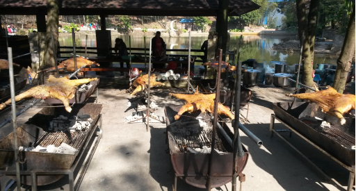 往前走,便能看到在人工湖邊上的鐵架上有正在待烤的肥羊,誘人的香味在鼻間彌漫,令人忍不住想上去咬一口,但一想到接下來還有重要的燒烤任務,伙伴們咽了咽口水,繼續(xù)前行!