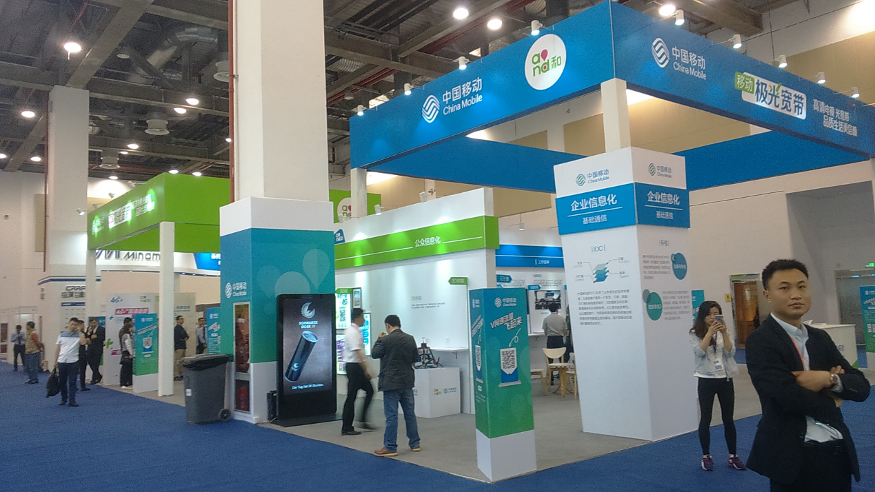本屆展會共計500家企業(yè)參展、展位數(shù)超1500個,使用面積達40000平方米。中國移動作為三大運營商之一,在眾多展位中毋庸置疑地占據(jù)著重要位置。